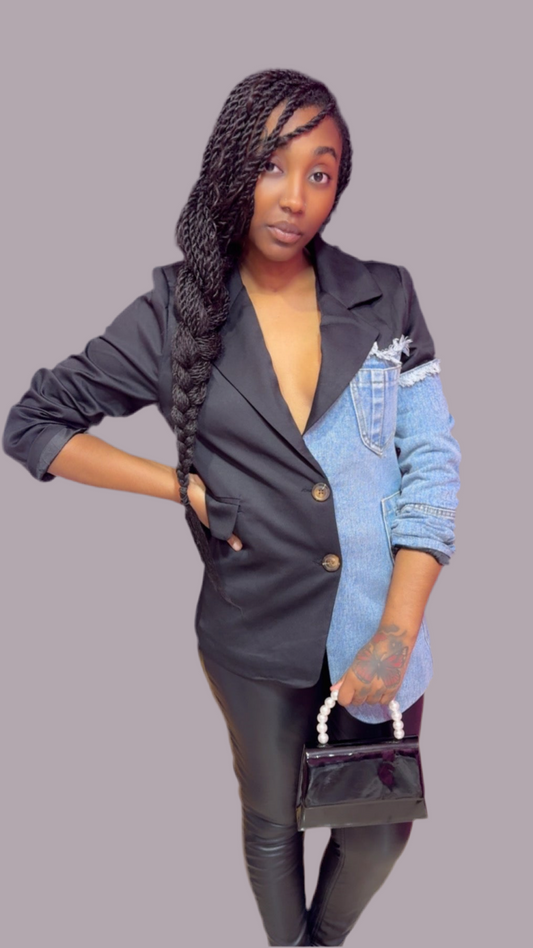 This Half Denim Blazer Is Sure To Turn Heads! With The Unique Mix Match Design,...