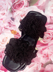 Black sandals with puffy flowers on toes gently worn! Size 9-9 1/2