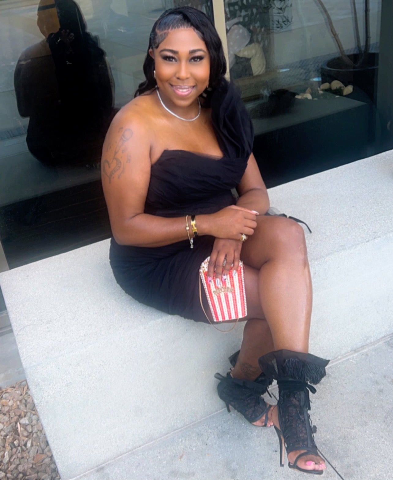 This Birthday Dress was worn one time in LA. So it’s gently worn. Original price is close to $500. It has a corset in the back so it really stretches to Your frame as You pull it. This is a show stopper for sure! A MUST HAVE!!!